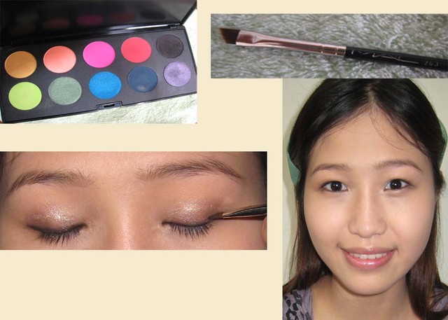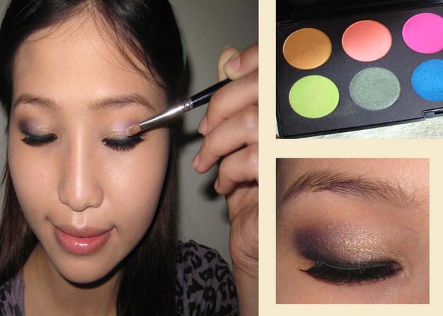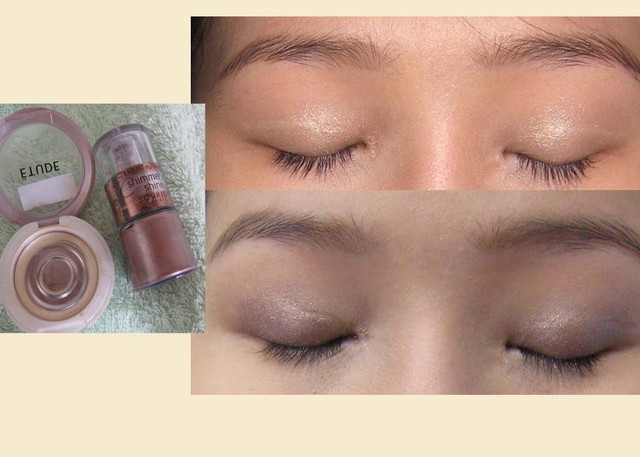 (上圖有閃光)第一層 先使用ETUDE的金色眼影膏來打底(打在整個眼窩處)