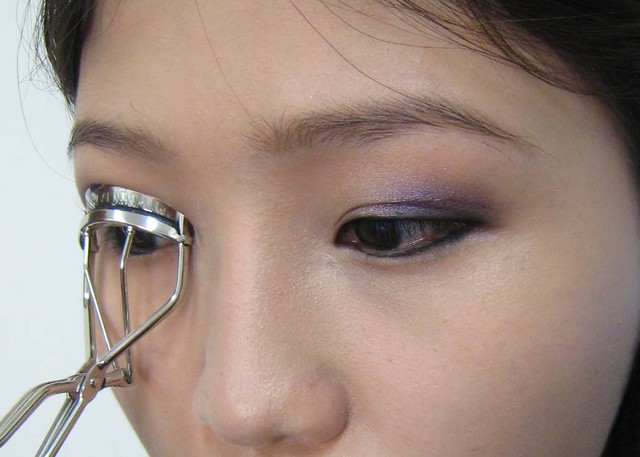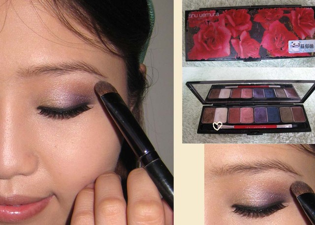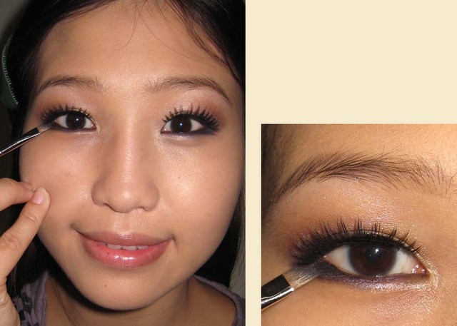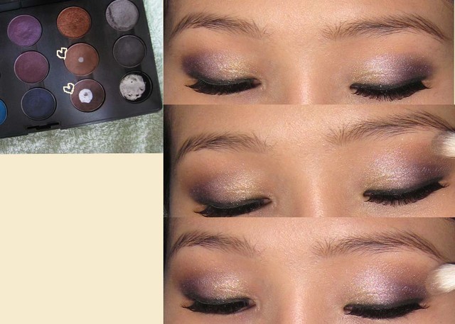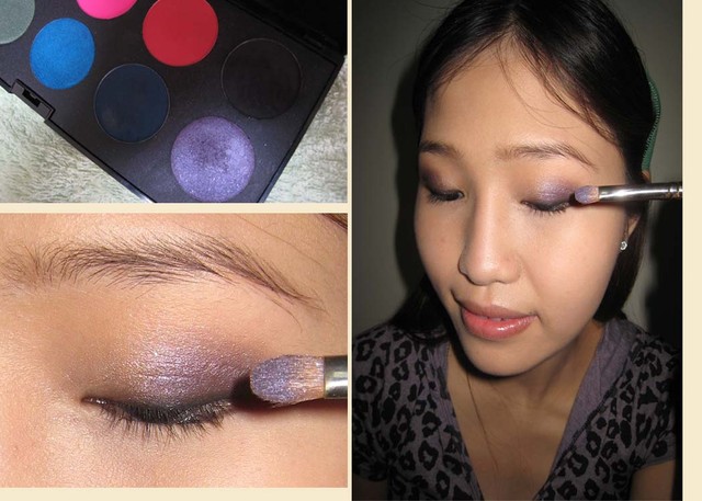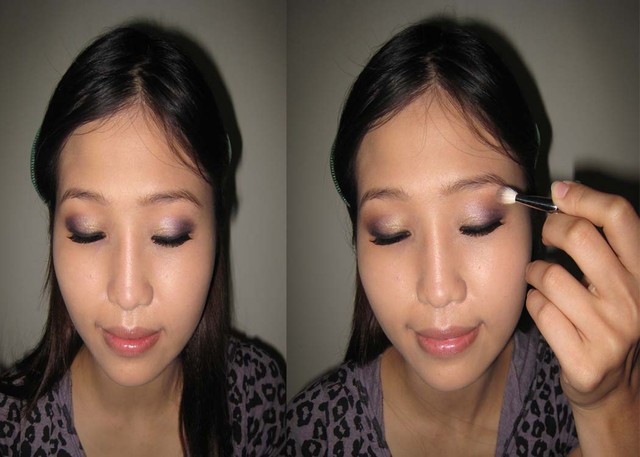 下眼影在沾取一些紫色眼影來做暈染~讓紫色煙燻表現更完美~