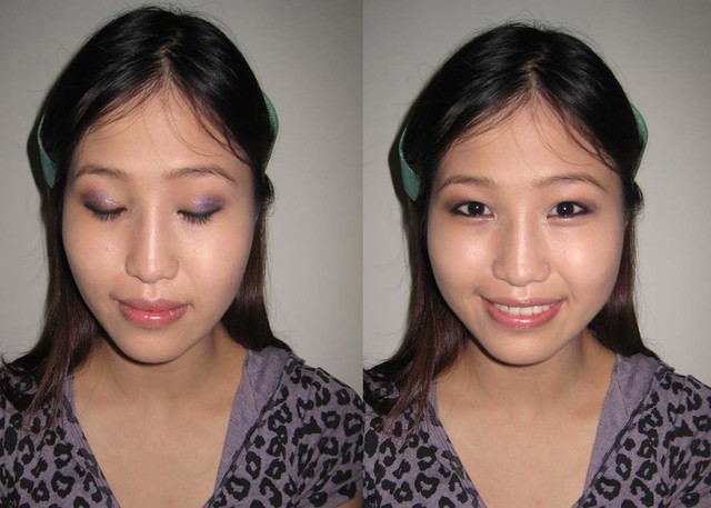 再來一張妝前妝後比較~就要正式進入打敗拋拋眼~畫出立體紫色小煙燻~化妝步驟分解~