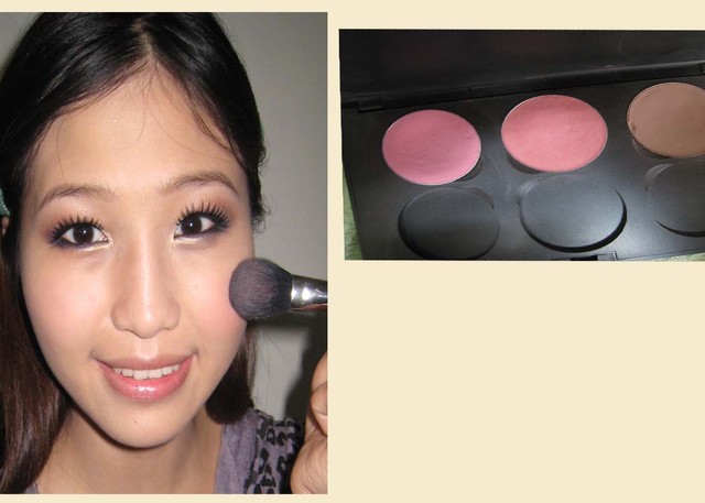 由於眼妝已很重也是這個妝容的重點~所以腮紅不能下太重或太pink~只要稍微增加整體氣色即可~