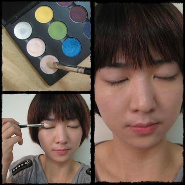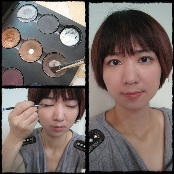 第二步~SOPHIA習慣先用眼影粉畫眼線~所以將深咖啡色用斜角刷~刷再靠近睫毛根部的地方!