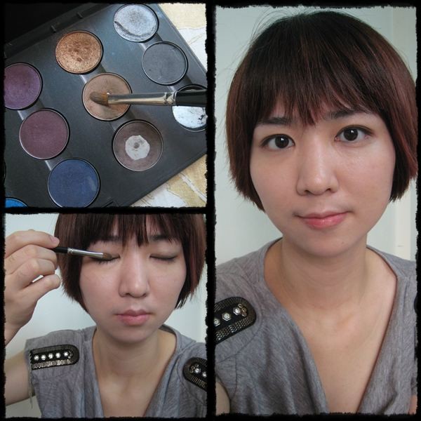 第三步~用淺咖啡暈染一下~位置在雙眼摺處~