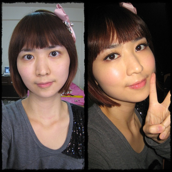 左上圖是素顏照~再比較一下~有化妝跟沒化妝!真的是差很大!
