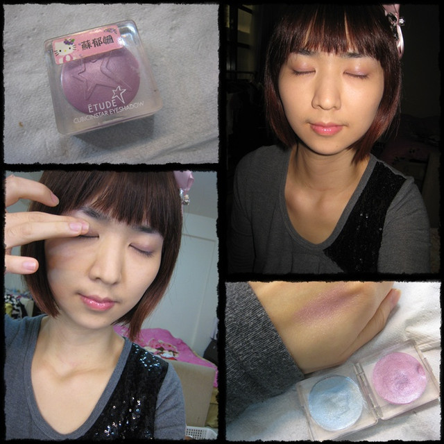 粉紫色眼影膏打在整個眼窩處~