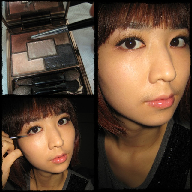 沾取LUNASOL眼影盤中間的膚金色眼影~在眼頭~上眼影前段~及下眼影前段到中段~
