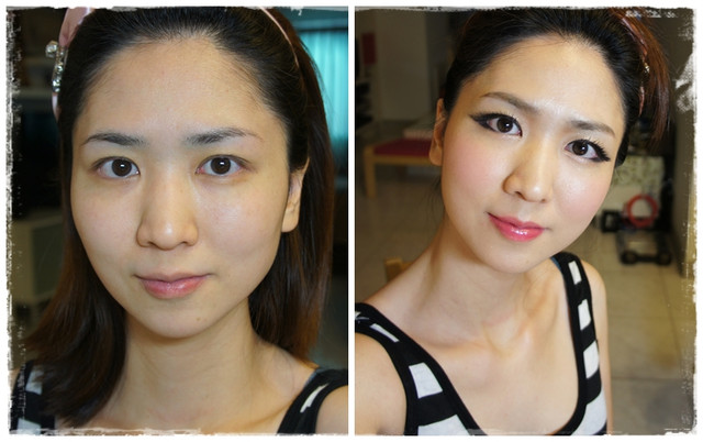台灣妹變身為氣質韓妞 素顏化妝前 化妝後(現在最夯的韓妞女神妝) 近幾年來,韓風的影響真的很大!無論是衣著,偶像劇,音樂到科技產業~韓風一直處於蓬勃發展的階段!然而 韓式清透的妝容也是許多少女一直很喜愛的!這篇SOPHIA就來完整呈現 氣質的韓妞女神妝其實韓式化妝不難,只要掌握住四大重點1.眼線的延伸勾勒,自然的睫毛 2.水嫩光澤肌+立體小臉 3.蜜桃色唇彩 4.個性直線粗眉掌握住這四大重點,你也可化身為氣質韓妞 左圖是一點保養品都還沒上!皮膚較無光澤! 妝前一定要先上基礎保養唷!化妝水乳液可以增加肌膚的肌潤度,也是不可少唷! 護唇膏也一併要抹上唷!這幾款保養品都是SOPHIA私底下愛用的! 素顏肌膚無光澤 基礎保養後保溼的肌膚 上完底妝後,底妝超服貼 魔法棒是 ESPRIQUE Light Control Stick 01 粉底液是 NARS MEDIUM2 眼線進化史~看影片會更清楚唷!!定妝粉餅使用 smashbox FAIR 眼線從頭到尾都只用這支 INTERGREAT眼線膠筆 限量色BK905 眼影只用 LUNASOL EX01 Tender Glow Beige Brown 和 RMK ME-02 Metallic Gold 將PX-8的假睫毛對半剪,sophia選擇使用前段接眼尾 Shu uemura 02 hard9 植村秀眉筆 Kiss Me 染眉膏 01 LUNASOL 腮紅 Tender Glow Pink EX04 RMK 粉餅 104L Laura mercier 唇膏HIBISCUS BLOOM MAKE UP FOR EVER 唇蜜D10(粉紅) 這簡單的韓妞妝容你們學會了嗎??彩妝教學團體班四月會開課~有興趣請連結http://www.wretch.cc/blog/shanyusu/3042910Sophia的粉絲團新成立嚕!!喜歡Sophia的別忘了加入唷! https://www.facebook.com/shansue20004/6前,只要幫Sophia把文章轉貼分享到你的FB 並留言一下你是~第幾推 第幾讚 ~即可有機會抽獎獲得CHIC CHOC 紫色眼影唷!如果人數多~會在加碼送唷!感謝大家唷!!!別忘了按推推推推!!! 延伸閱讀選對假睫毛讓你眼妝更加分唷!完整的假睫毛分析藤井リナ眼妝教學 Lena Fujii Signature Look Tutorial時尚名媛妝容速成版~ SOPHIA整理了那麼辛苦!請大家幫忙按推一下囉!!!感謝!!