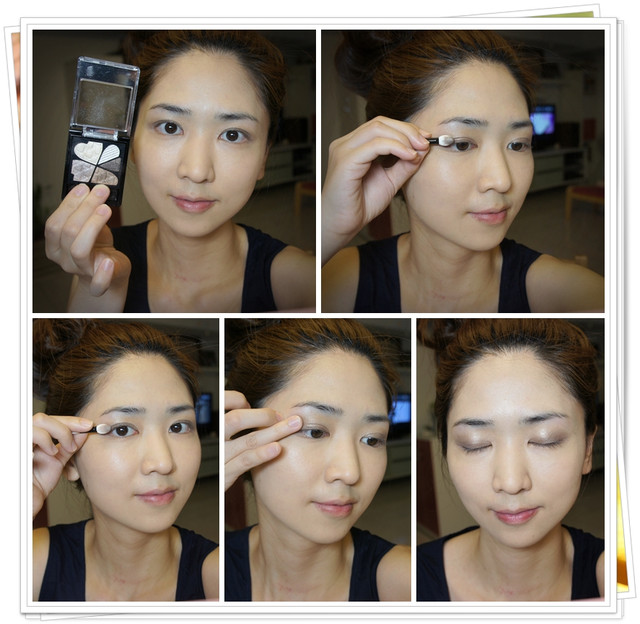 第一個步驟先使用左上角的膚金色,它可以是眼妝前的透亮打底色