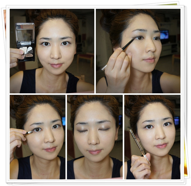 最後最深的咖啡色在靠近睫毛根部的地方畫上眼影式的眼線,讓整個眼睛放大。